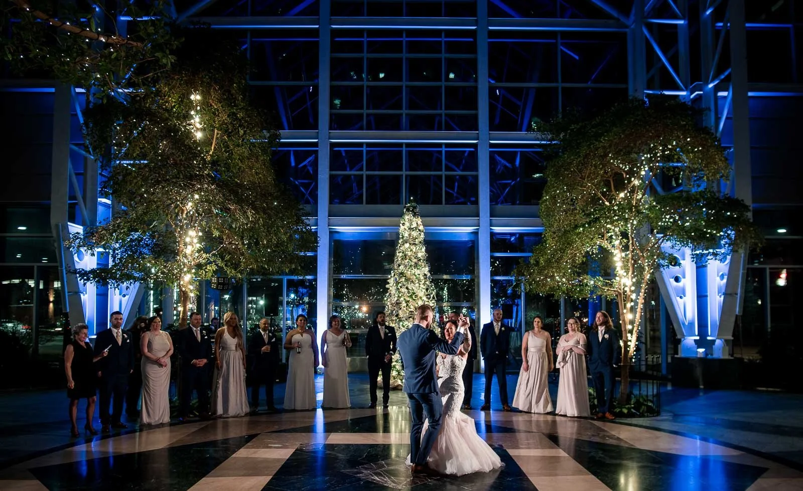 Even better is how the Wintergarden offers separate spaces for your ceremony, cocktail hour, and reception. No last-minute flipping the room after your ceremony wraps up - instead, you and your guests move from the two-story lobby to your private cocktail hour hosted on the second floor, and then to the grand atrium for dinner and dancing.